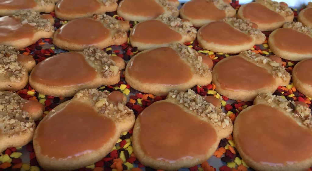 The holidays always spark my desire for theme baking. Perfect for Thanksgiving are maple glazed sugar cookies in the shape of acorns. They take some time to make but look great when finished! Adding the maple syrup glazing and chopped walnuts. 100% natural maple syrup of course. How cute are they!?